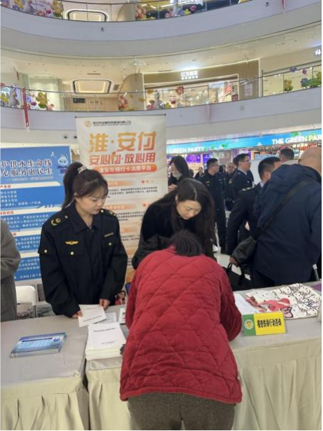 淮金数科公司现场进行“淮·安付”平台的宣讲,向广大市民推介“淮·安付”平台“立足民生实事、对预付资金的全面监管,可切实保障消费者的合法权益”的建设理念和使用方式,并接受相关市民的宣传咨询服务。